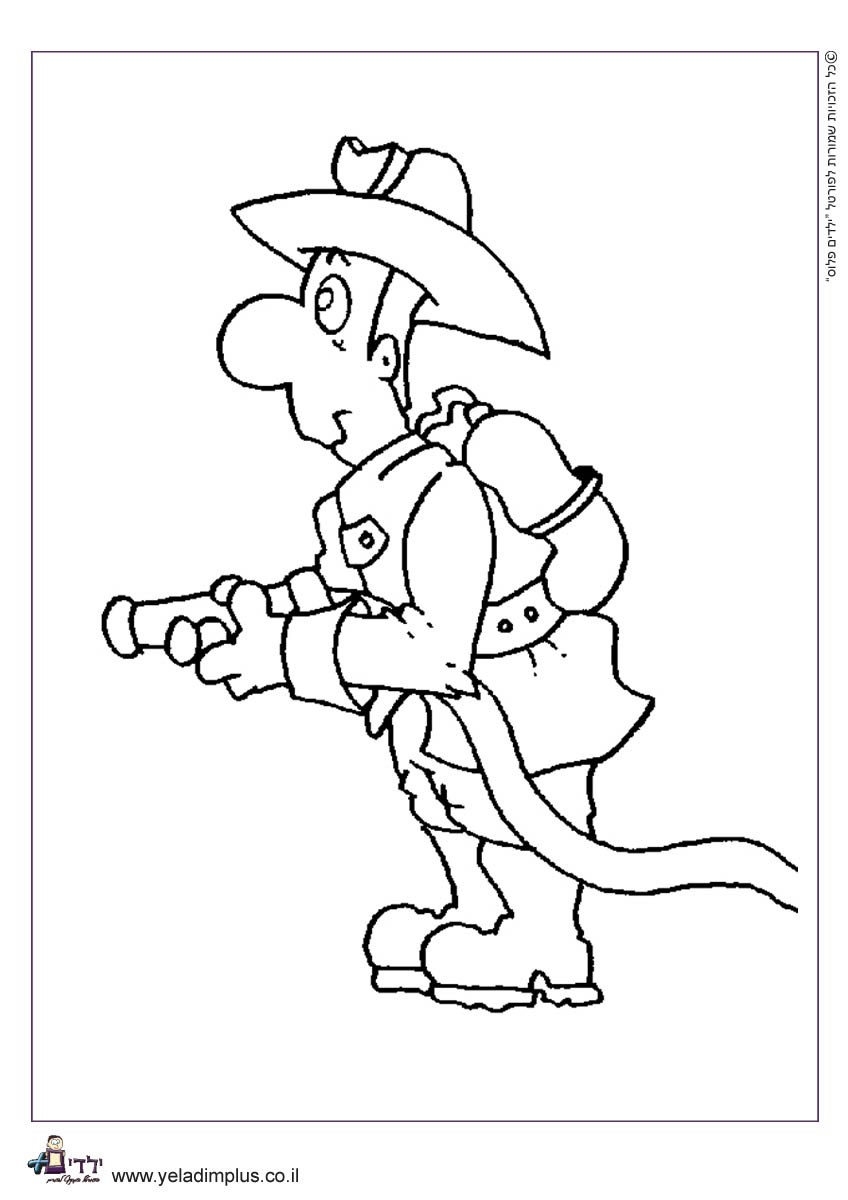 תפקידם של לוחמי האש הוא כיבוי שריפות, חילוץ והצלה. לפניכם דף צביעה של לוחם אש שמכבה שריפה בעזרת צינור מים.
