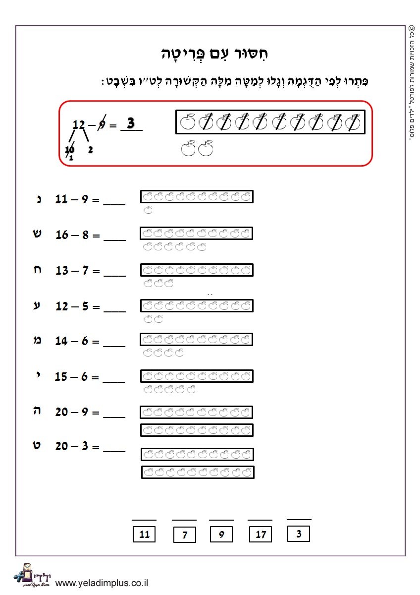רוצים לתרגל עם הילדים פתרון תרגילים בחיסור עם פריטה? דף העבודה הבא עוסק בדיוק בנושא הזה ואף קשור לט"ו בשבט.