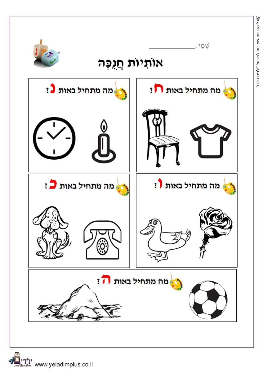 דף העבודה שלפניכם עובד על האותיות של המילה חנוכה, כאשר הילדים צריכים בכל פעם לזהות את האות ולחשוב איזו מבין שתי האפשרויות, היא מילה שמתחילה באותה האות. דרך נחמדה וחוויתית לעבוד עם הילדים על אותיות.