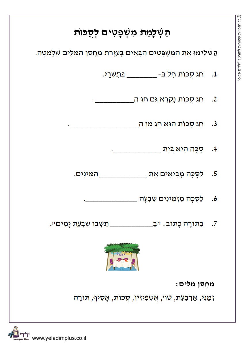 השלמת משפטים לסוכות
