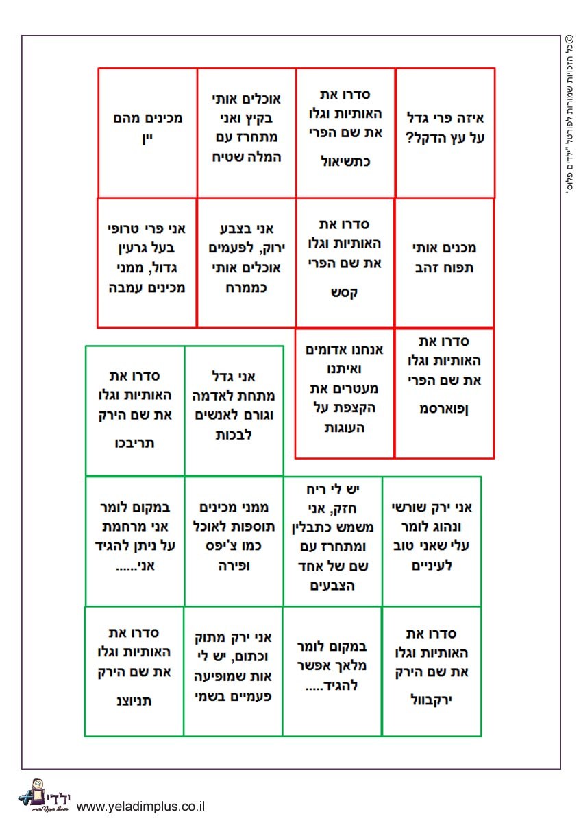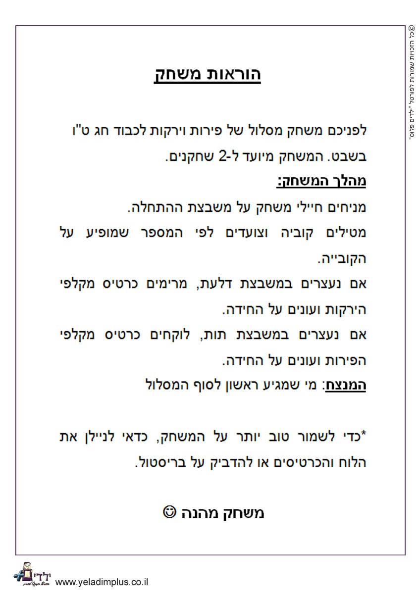 משחק מסלול לט"ו בשבט- פירות וירקות