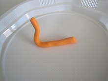שלב 2 יוצרים גליל מעט קטן יותר מפלסטלינה כתומה שישמש אותנו כגוף השבלול. | ![]() |