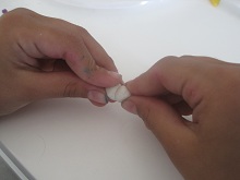 שלב 5 בעזרת כלי החיתוך יוצרים חור קטנטן בחלקו התחתון של ראש השבלול שישמש כפיו. | ![]() |