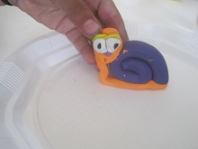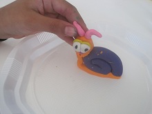 שלב 3 מרטיבים את הידיים עם מעט מים ומדביקים את גוף השבלול לבית שלו. | ![]() |