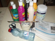 שלב 7 לאחר שסיימנו להדביק את נייר העיתון, נצפה את הבקבוק בעיסת הנייר. | ![]() |