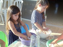 שלב 8 נמתין 24 שעות שהעיסה תתייבש... "יום אחד הוא טייל בחצר, ופתאום היא הופיעה מולו, ברבאמא יפה, ברבאמא שחורה, מתאימה בדיוק בשבילו ..." (...אפשר ליצור גם את ברבאמא) | ![]() |