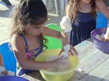שלב 4 – הכנת עיסת נייר נערבב כף אבקת דבק טפטים בכוס מים, ונשפוך לקערה. נוסיף לקערה גם כוס דבק פלסטיק לבן ונלוש היטב עד לקבלת מירקם של עיסת נייר נעימה לעבודה. | ![]() |