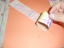 שלב 4 נגלגל את הגלילים על גבי רצועת המפית שמרחנו בדבק. | ![]() |