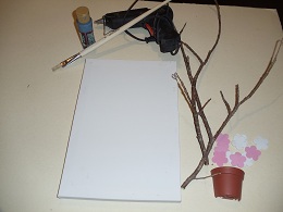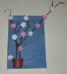 שלב 3 מדביקים על גבי הענפים את צורות הפרחים מסול. | ![]() |